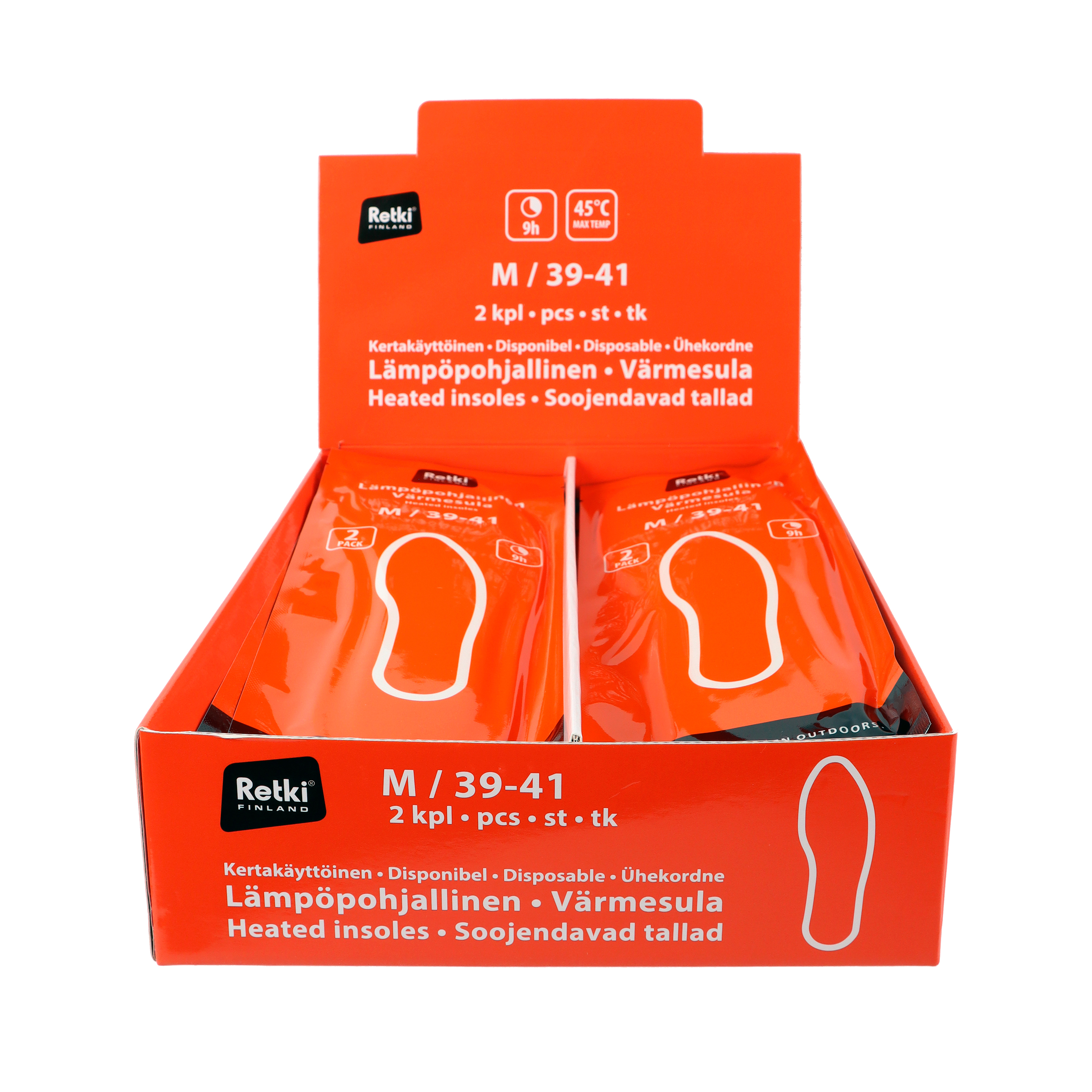Kengän sisälle asetettava kertakäyttöinen lämpenevä pohjallinen on täydellinen ratkaisu kylmien päivien varalle. Pohjallinen tarjoaa miellyttävää ja tasaista lämpöä jopa 9 tunnin ajan, pitäen jalkasi lämpiminä ja mukavina koko päivän. Pohjallisen lämpöaktivoituva reaktio käynnistyy yksinkertaisesti pakkauksen avaamalla, joten sen käyttöönotto on nopeaa ja vaivatonta. Lämpö pohjalliseen syntyy luonnollisista ainesosista, jotka reagoivat ilman kanssa. Ainesosaluetteloon kuuluvat rautajauhe, vesi, aktiivihiili, vermikuliitti ja natriumkloridi. Näiden ainesosien yhdistelmä luo lämpöreaktion, joka ylläpitää mukavan lämmön pitkään. Aktiivihiili ja vermikuliitti auttavat säätelemään ja pitämään lämmön tasaisena, kun taas rautajauhe ja vesi käynnistävät kemiallisen reaktion tuottaen lämpöä. Tämä lämpenevä pohjallinen on erinomainen valinta talvella ulkoillessa, ja se tuo käyttömukavuutta myös tilanteisiin, joissa liikut viileämmissä olosuhteissa pidempiä aikoja. Ainesosat: rautajauhe, vesi, aktiivihiili, vermikuliitti, natriumkloridi. Koko: M, 25 cm/39-41 2 kpl